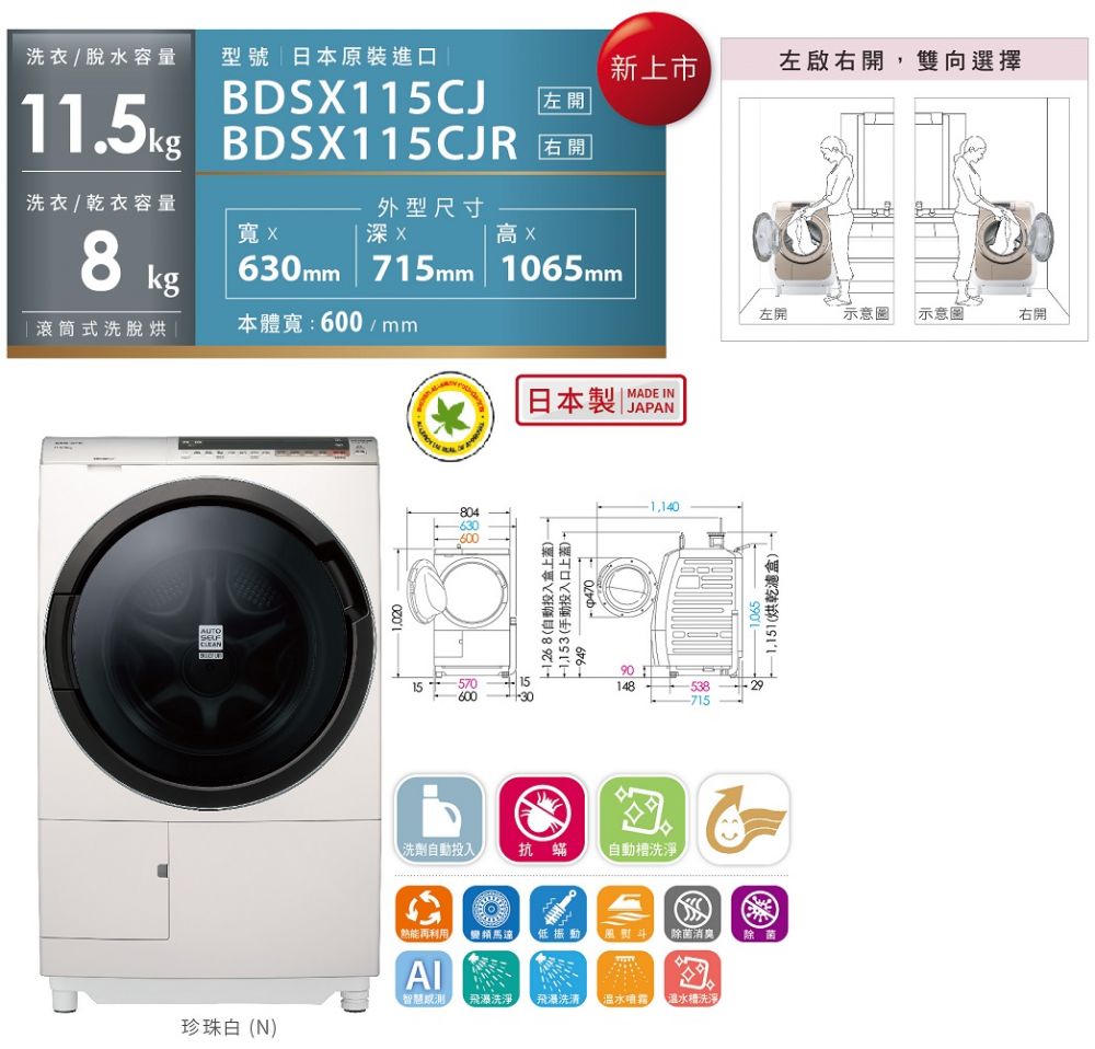 BDSX115CJR右開送大台北都會區特價元(我們祥銘貿易給發票、含運送、標準安裝和舊機回收)無電梯2樓(含)以上每層樓層搬運費加100元 2021年10月1日~2022年1月31日 買◎日製冰箱:RXG680NJ / RHW610JJ / RHW610NJ / RHW530JJ / RHW530NJ / RKW580KJ / RXG570JJ ◎日製洗脫烘洗衣機:BDNX125FH / BDNX125FHR / BDNV125FH / BDNV125FHR / BDSX115FJ / BDSX115FJR / BDSV115EJ / BDSV115EJR / BDSX115CJ / BDSX115CJR / BDNX125BHJ /BDNX125BHJR / BDNX125BJ / BDNX125BJR 送《美麗有禮》美國Fredy 音波電動牙刷組+虛擬多選券6選1 $2000元 可兌換選項有: 7-11虛擬商品卡、家樂福即享券、遠東SOGO百貨即享券、遠東百貨即享券,大潤發即享券、屈臣氏即享券,擇一兌換後不得更改。 遠東SOGO百貨/ 遠東百貨禮券無法共用 ※虛擬多選卷須自行線上進行申請,詳細活動及申請方式請至日立家電官網查詢 HITACHI日立尼加拉飛瀑滾筒洗脫烘洗衣機型號BDSX115CJR右開 BDSX115CJR商品規格 BDSX115CJR尺寸:寬630 x 深715 x 高1065 mm 本體寬:600 mm 類型:滾筒式洗脫烘 系列:擺動式溫水尼加拉飛瀑 特色:AI智慧感測洗衣、洗劑自動投入、高溫風抗蟎 顏色:珍珠白(N) 最大洗衣量:11.5 Kg 最大烘衣量:8 Kg 門屝設計:右開/另有左開可選購 洗衣行程:標準/清洗1回/快速/手動/溫柔/毛毯/芳香/高級服飾/柔洗/抗蟎 烘衣行程:標準/毛毯/夜間/靜止烘乾/自設烘衣時間/除菌消臭/除花粉 洗脫烘行程:標準/清洗1回/快速/手動/毛毯/夜間/除菌 抗蟎行程 特殊行程:芳香行程(想要良好發揮柔軟精芳香)、洗脫烘的除菌行程、異味菌能99%去除 洗滌方式:尼加拉飛瀑循環洗滌(擺動式水流) 清洗方式:尼加拉飛瀑循環洗清 溫水噴霧 ◎30分鐘清洗皮脂、90分鐘消除黃斑去除異味細菌(水溫約40~50℃) 感測系統:AI感測系統(9種智慧感測) 風熨斗烘衣 ◎獨家風熨斗技術榮獲日本發明賞大獎 節能設計 ◎熱能再利用節能烘衣 我們祥銘貿易 蒸氣風熨斗 ◎15分鐘除皺消臭 3D自動全槽洗淨 ◎每次洗衣自動清潔保養、除菌防黴率達99% 槽洗淨 ◎定期保養(3小時/11小時) 除菌消臭功能 ◎99%除菌率 我們祥銘貿易 認證 ◎抑制室內曬衣異味認證 拋鬆脫水 ◎冬天可設定成溫風抛鬆 抗振科技 ◎毛毯6kg OK BDSX115CJR商品特色 .洗劑自動投入 洗衣輕鬆便利 .洗劑自動投入的4大便利及設計 .AI智慧感測 省去繁瑣設定聰明洗衣 .9種智慧感測裝置 節能洗衣再進化 .【溫水噴霧】+【尼加拉飛瀑洗淨】去除黃斑 .【溫風除菌】+【高溫風抗蟎】 一鍵淨除異味原 .尼加拉飛瀑洗清 洗劑不殘留 .頂級房車抗振科技 高效減振低噪音 .大型毛毯輕鬆能完成洗衣及烘衣 .大型洗滌物OK 全家衣物一次輕鬆清洗 .多元化便利行程選擇 .日立獨家風熨斗 烘衣科技 .極速風撫平皺摺 衣物烘完即可穿出門 .蒸氣風熨斗 15分鐘除皺消臭遠離PM2.5 .2小時溫水槽洗淨 內外槽徹底潔淨 .3D自動全槽清水洗淨 除菌防黴99% .洗衣同時潔淨烘乾管道 我們祥銘貿易 .新型線屑濾網 清潔保養容易 .全方位貼心便利設計 .節能省水的極效節約設計 .通過國家金級省水標章認証 .主馬達5年保固 全機保固1年、機板保固3年、運轉組保固3年、馬達保固5年 本祥銘貿易網頁的產品規格內容和圖檔為原廠提供,僅供參考,若有錯誤或更改,以原廠實際產品為準! 詳細功能請參考日立家電官網 網路與門市一同販售,下標購買前請先溝通詢問我們祥銘貿易是否還有貨,避免雙方交易糾紛,如遇商品缺貨可預訂,貨進口到台灣就可以馬上送到您府上,感謝您,祝交易愉快^_^ 販售全型號日立家電商品,歡迎來信或來電詢價 此價格是送到台北市、新北市都會區的價格,新北市都會區包括五股區、泰山區、三重區、土城區、中和區、永和區、汐止區、新店區、新莊區、樹林區、蘆洲區、板橋區。 送到新北市偏遠地區、基隆市、桃園縣里程費另議。