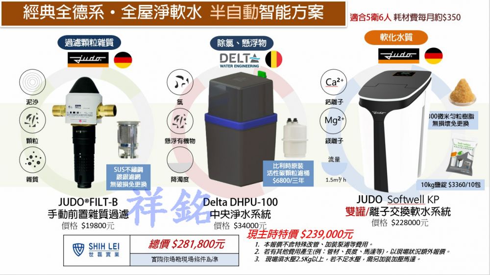 豪華德歐系全屋淨軟水免電力方案適合3衛6人