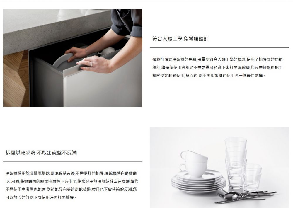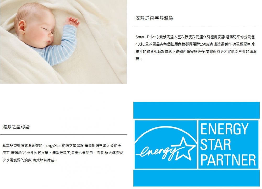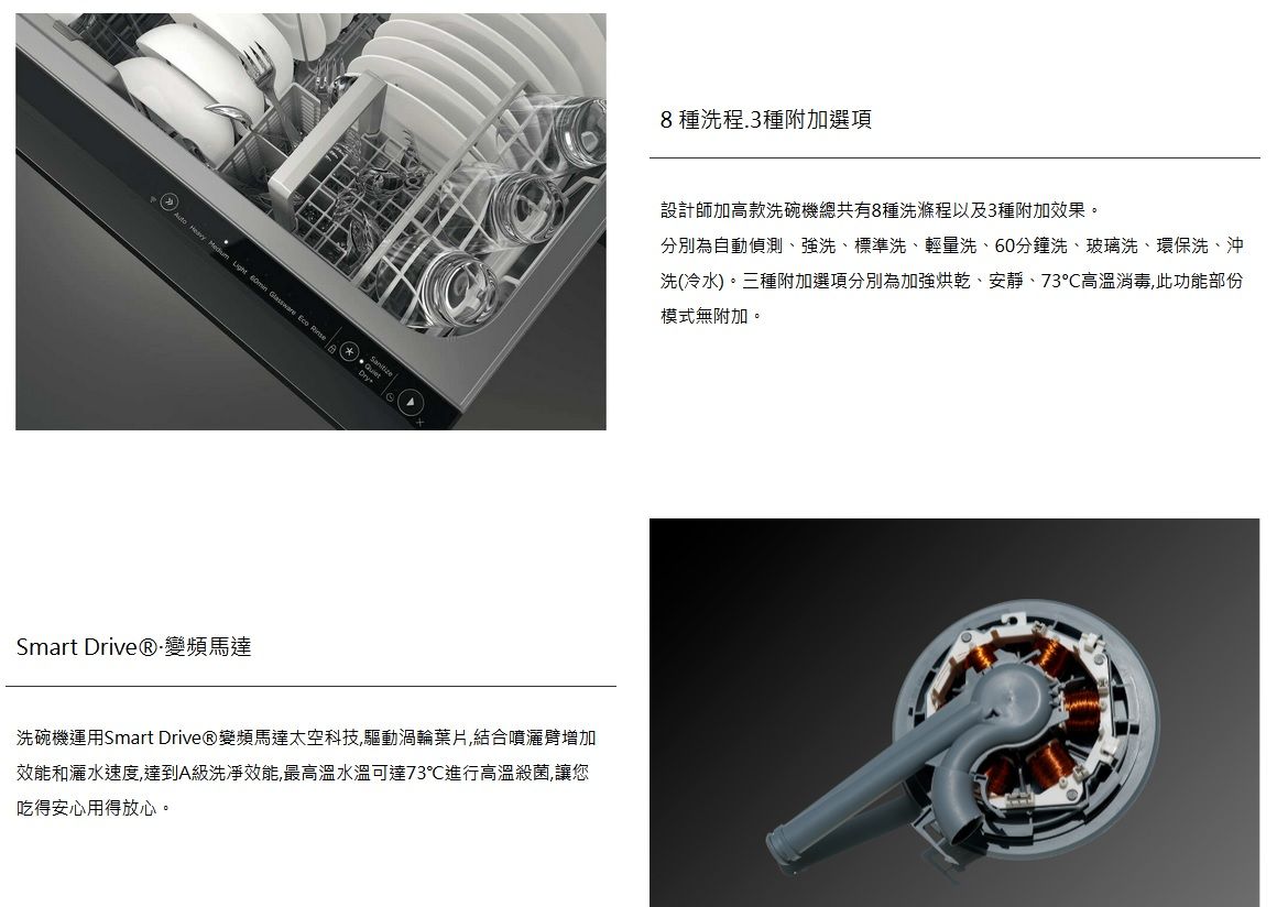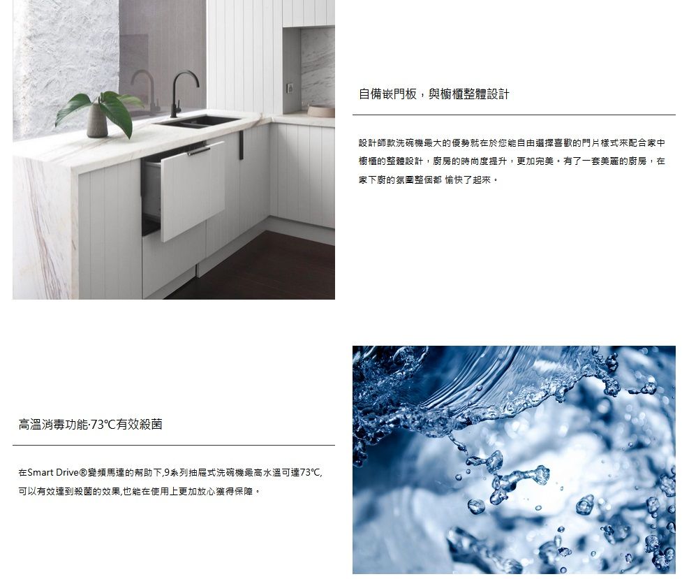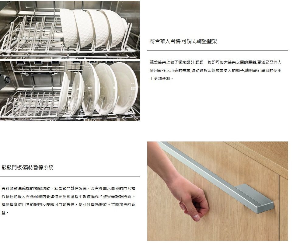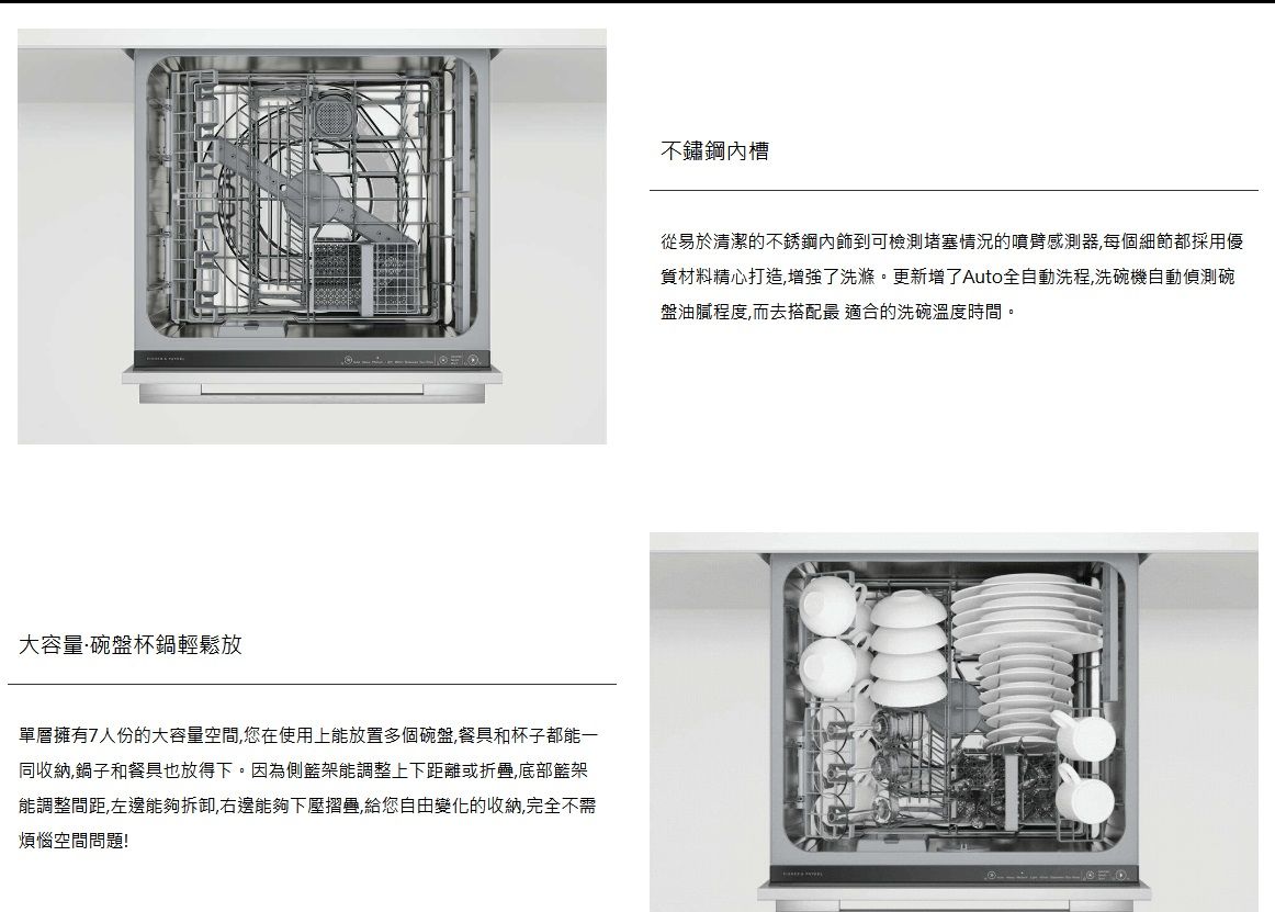 | DD60STX6HI1送大台北地區特價(含稅給發票、含運送、無電梯樓層費另計),其他地區請先詢問 安裝費用另計,請先詢問! Fisher & Paykel菲雪品克11系列單層設計師加高款洗碗機型號DD60STX6HI1 DD60STX6HI1商品規格 DD60STX6HI1尺寸:寬599 x 深573 x 高454 mm 門片尺寸:上門 寬595 x 深16-22 x 高452 mm 嵌入尺寸:寬600 x 深560 x 高456 mm 容量:7人份 電壓:110V / 60Hz 分貝:43db 門板材質:客製化面板 平均功率:單層最大600W 我們祥銘貿易 耗水量:6.9L DD60STX6HI1商品特色 .設計師款抽屜式洗碗機,是目前設計師最喜歡推薦的款式。它的門片使用設計師或廚具商所配置的門片,外表完全看不出來是一台洗碗機,讓洗碗機與家裡廚櫃融為一體,連控制介面也隱身在門片内,讓整體都能完美的配合廚房設計,讓整套廚櫃系統更加高貴亮眼。 .中途添加碗盤,點擊暫停功能就可以了 .八種從重度到輕度的清洗循環,包括自動、60 分鐘和玻璃器皿清洗 .可容納最大 310 毫米的盤子,配有靈活的擱架,可容納其他大型炊具 我們祥銘貿易 .自由選擇喜歡的門片樣式來配合家中櫥櫃的整體設計 本網頁的產品規格內容和圖檔為原廠提供,僅供參考,若有錯誤或更改以原廠實際產品為準 詳細功能安裝尺寸請參考勁威官網 網路與門市一同販售,下標購買前請先溝通詢問是否還有貨,避免雙方交易糾紛 販售全型號勁威Fisher&Paykel菲雪品克商品,歡迎來電(店)詢價 |