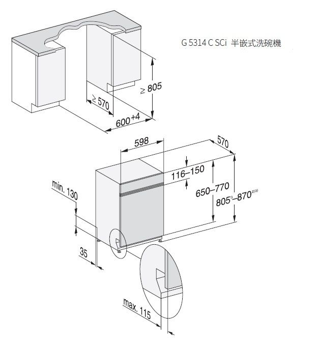 G5314C SCi送大台北地區價格(含稅給發票、含運送、無電梯樓層搬運費另計) 下訂前請告訴我們祥銘貿易要送哪一區? 幾樓? 有無電梯?可加快報價速度 (嵌入式機型安裝需額外收費,要自備門板,有需要安裝請再洽詢安裝費) 德國Miele半嵌式洗碗機型號G5314C SCi G5314C SCi商品規格 .G5314C SCi機體尺寸:寬598 x 深570 x 高805 mm .G5314C SCi安裝尺寸:寬600 x 深570 x 高805-870 mm .顏色:不鏽鋼 .電壓:220V/60Hz/1.8kW/9A G5314C SCi商品特色 行程選擇 .一般 .自動 45-65°C .輕柔洗滌 45°C 我們祥銘貿易 .QuickPowerWash 65°C .加強 75°C .附加功能:快洗程序、AutoOpen自動開門、關閉補充提示、額外清潔、額外烘乾