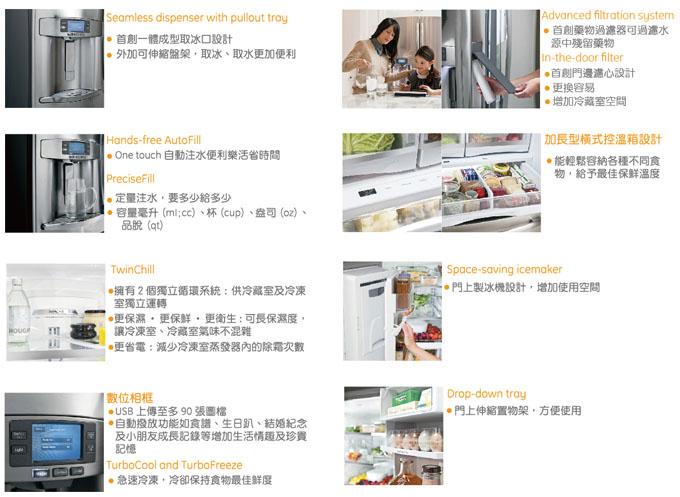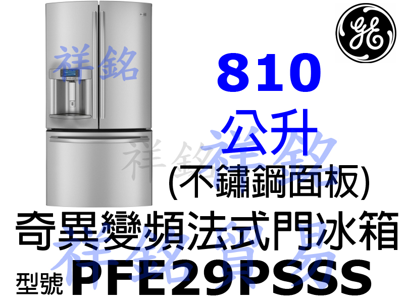全省運送,偏遠地區運費另議請先詢問,謝謝您 GE奇異810公升法式門製冰冰箱PFE29PSSS變頻門外取冰取水型號PFE29PSSS PFE29PSSS商品規格 顏色:不鏽鋼面板灰色機身 容量:810公升 PFE29PSSS:高177 × 寬91 × 深92公分 電壓:110V/60HZ 購買前請先準確量好預擺設的位子高度、寬度和深度,運送時可能會發生門、樓梯轉角處和走道太小,冰箱無法送入內的情形,所以選購前請記得先準確量家中門、樓梯轉角處和走道尺寸,下訂單時可以將門尺寸或特殊環境、情況告知,希望能為各位網友提供更好的商品和服務。 PFE29PSSS商品功能 .一體成型門外取冰取水口 .Advanced filtration system .Hands-free AutoFill .PreciseFill .能源之星標章 .可伸縮式拖盤 .數位相框功能:USB上傳至多90張圖檔,自動撥放功能 .TwinChill獨立雙冷凝保鮮系統:擁有2個獨立循環系統,供冷藏室及冷凍室獨立運轉 .無霜預冷科技 .多重出風循環系統 .電子式溫控 .彩色LCD觸控式溫度控制面板 .TurboFreeze急速冷凍 .TurboCool強制冷卻 .可調溫度保鮮室 .LED照明 .可拆式氣密門磁條 全機保固1年 冷煤保固3年 壓縮機保固5年 本網頁的產品規格內容和圖檔為原廠提供,僅供參考,若有錯誤或更改以原廠實際產品為準 網路與門市一同販售,下標購買前請先溝通詢問是否還有貨,避免雙方交易糾紛,如遇商品缺貨可預購,貨進口到台灣就可以馬上送到您府上,感謝您,祝交易愉快^_^ 販售全型號奇異商品,歡迎來電(店)詢價